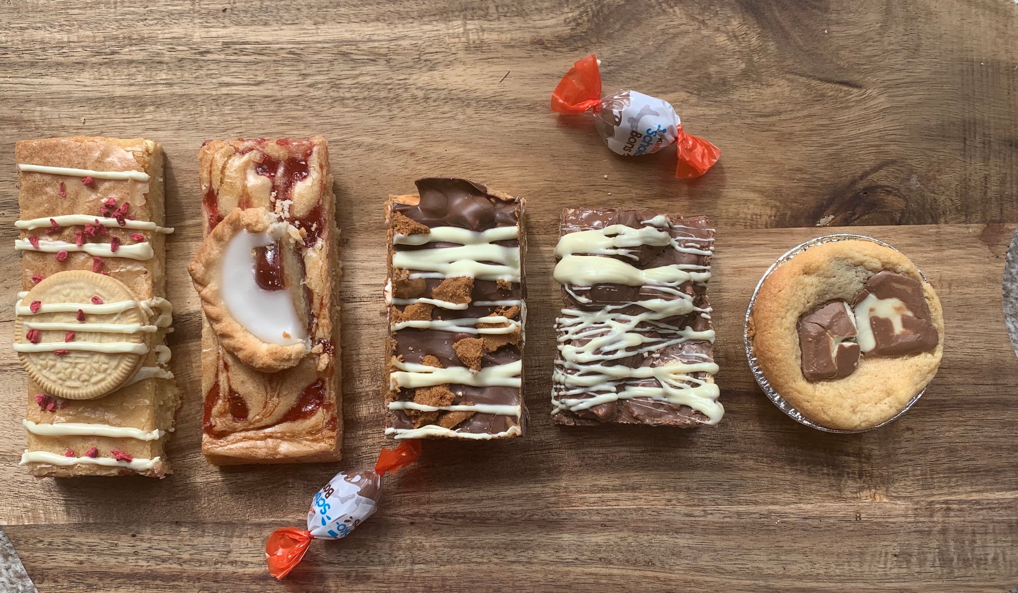 Plain Flour, Light Brown Cane Sugar, Madagascan Vanilla Extract (Glucose Sugar, Invert Sugar, Brown Sugar) Free Range Egg, Caster Sugar, Milk Chocolate (Sugar, Cocoa Mass, Whole MILK Powder, Cocoa Butter Vanilla Extract.)